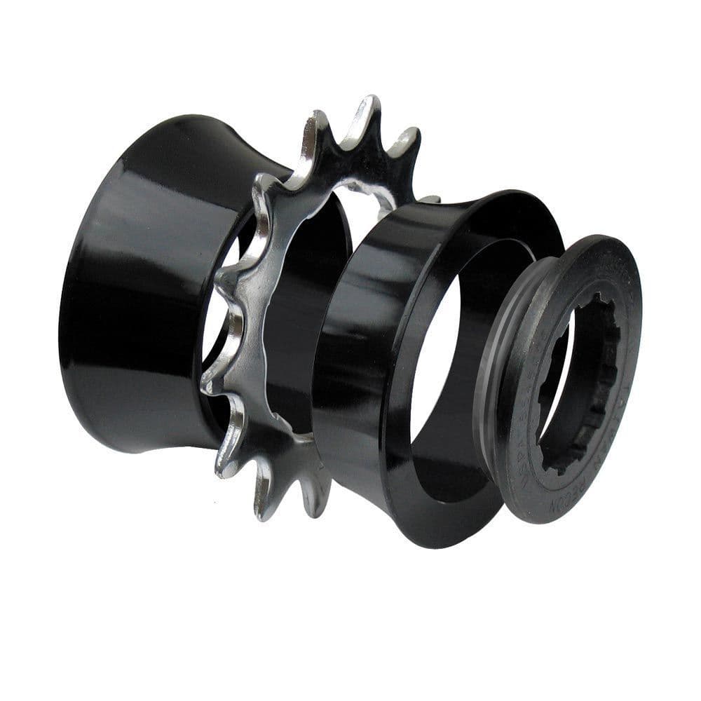 The 1-ER kit is our entry level singlespeed kit, designed to introduce you to the world of singlespeed without breaking the bank. With narrow steel cogs we recommend using this on steel freehub bodies only. Our tapered spacers are designed to offer increased lateral support for the cog under load.
